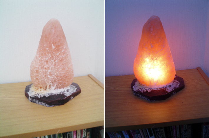 ピンク色の岩塩に穴をあけてランプにしたものです。